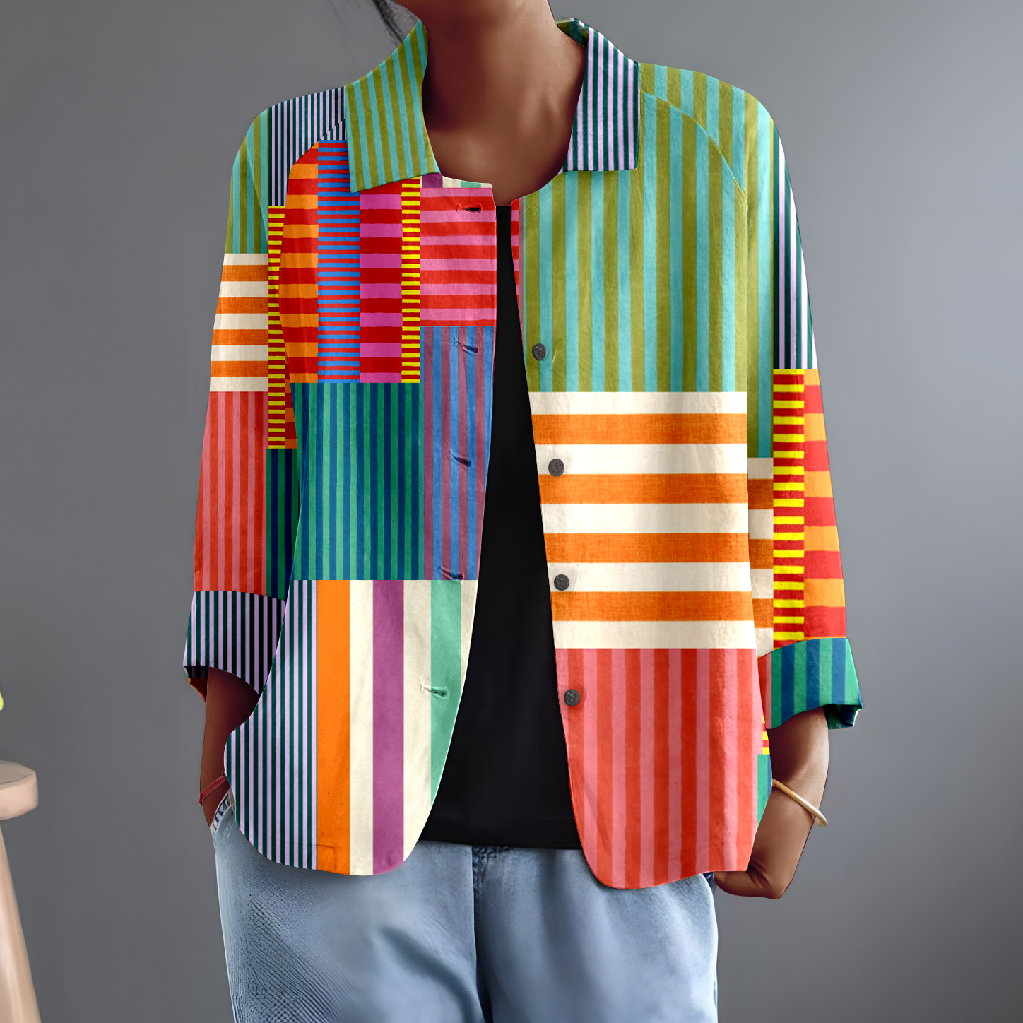 Barevná košile na knoflíky s nepravidelným pruhovaným potiskem