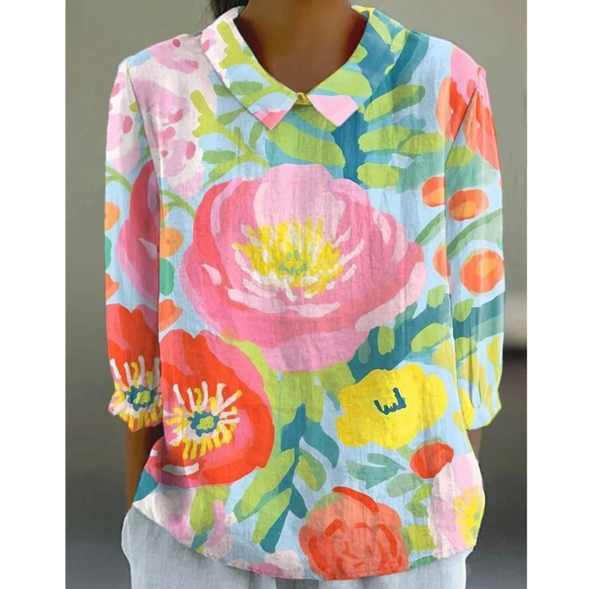 Barevná, květinová dámská bavlněná a lněná košile s malým límečkem