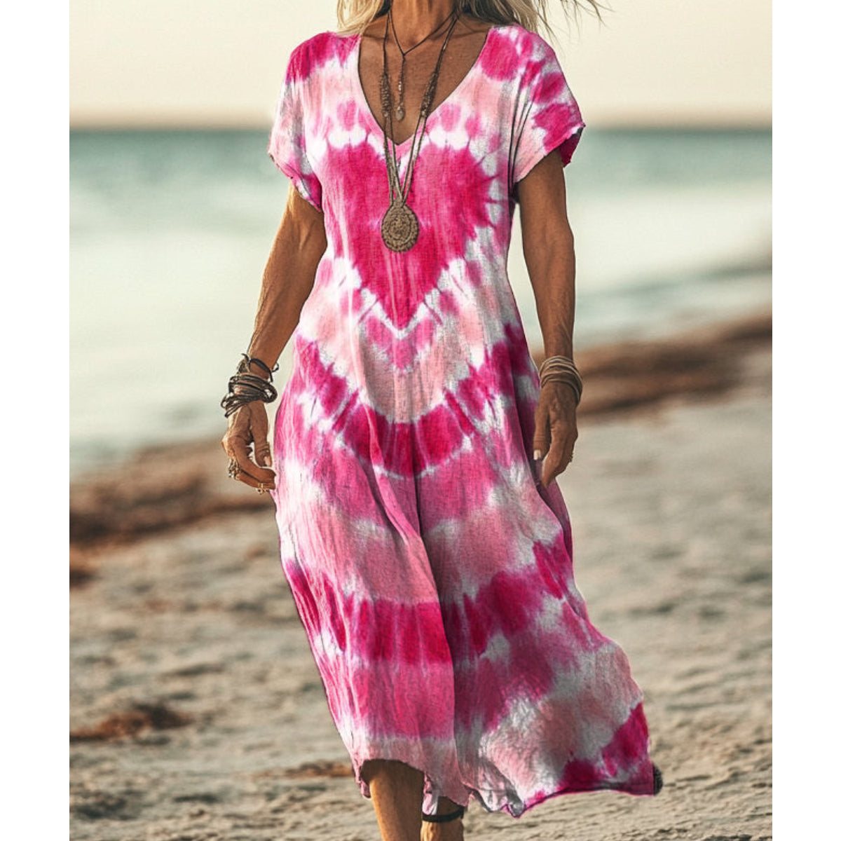 Dámské bavlněné šaty s kapsami a potiskem ve tvaru srdce