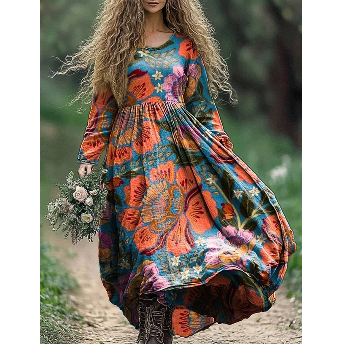 Dámské vintage bavlněné šaty s květinovým potiskem a kapsami