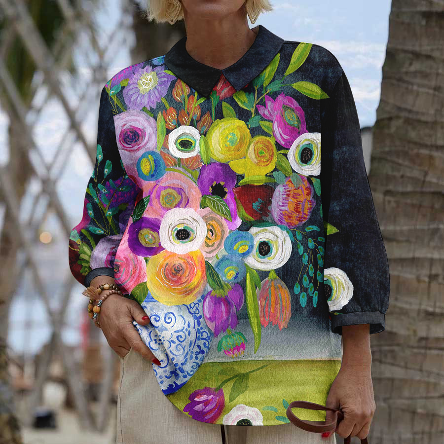 Elegantní a pohodlná černá košile s dlouhým rukávem a květinovým vzorem