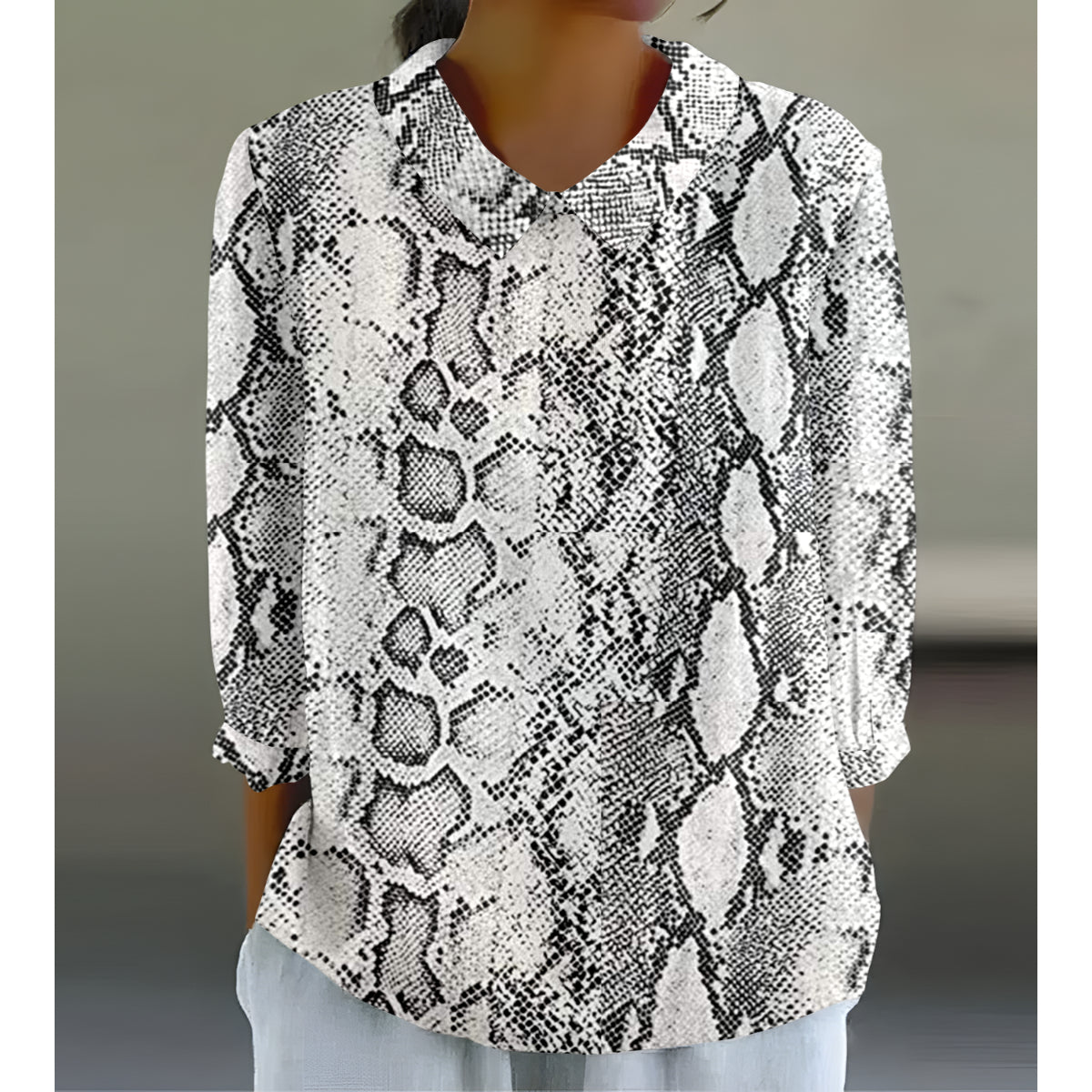 Elegantní a pohodlná ležérní košile s černo-bílým hadím vzorem