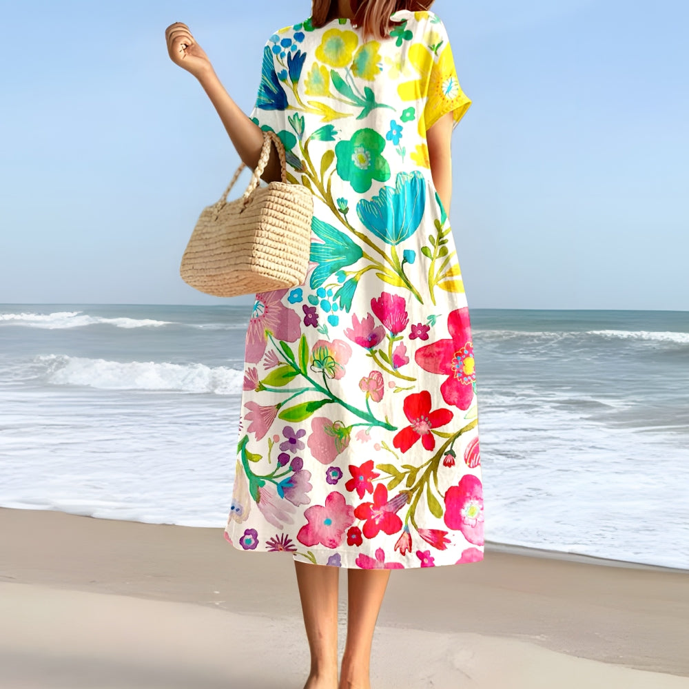 Elegantní a pohodlné barevné šaty s krátkými rukávy a květinovým vzorem