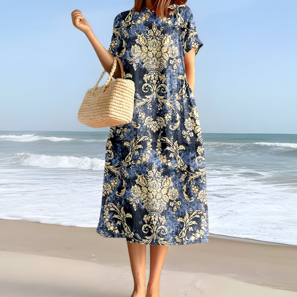 Elegantní a pohodlné tmavě modré šaty s květinovým vzorem