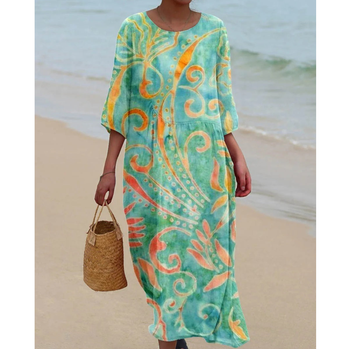 Elegantní zelené šaty s oranžovým květinovým grafickým vzorem