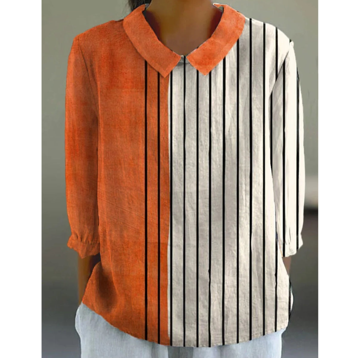 Oranžová a bílá pruhovaná košile z bavlny a lnu