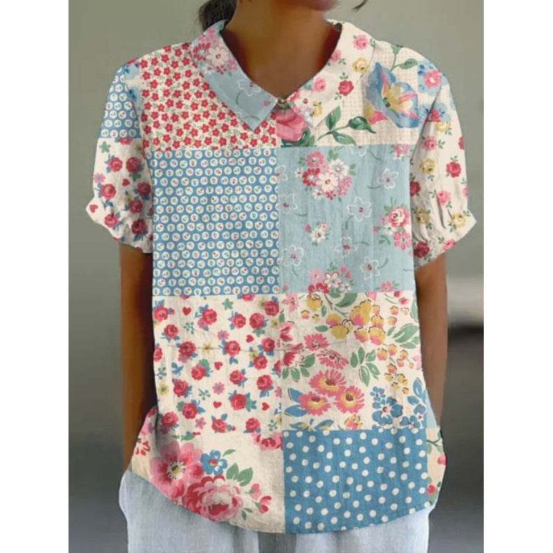 Rustikální patchworková košile se žlutými klopami 02