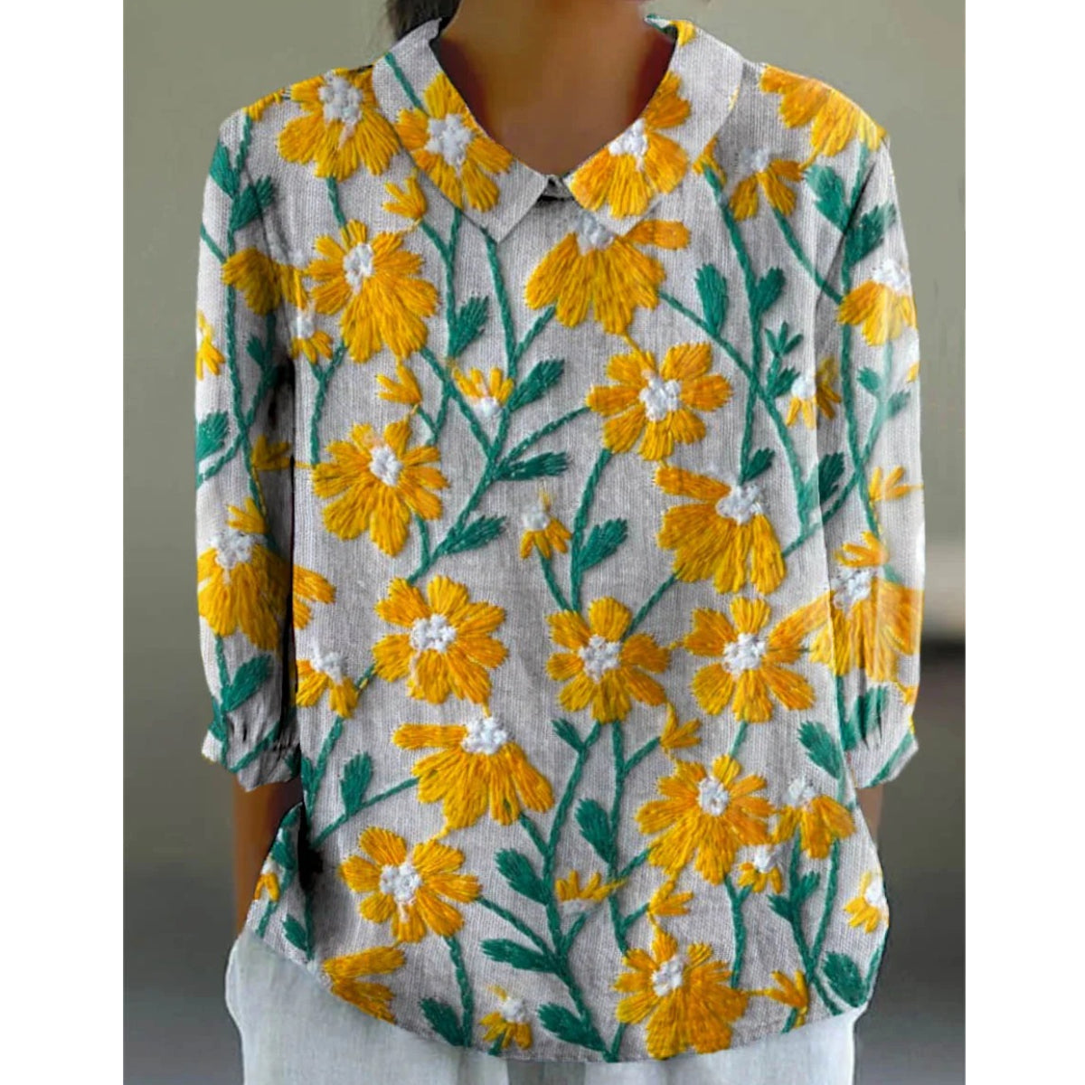 Žlutá ležérní košile s květinovou výšivkou